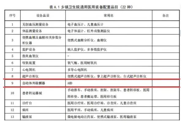 2025年10月1日起,國家衛(wèi)生健康委發(fā)布的《鄉(xiāng)鎮(zhèn)衛(wèi)生院醫(yī)用裝備配置標準》(WS/T 843-2025)正式施行。這一備受業(yè)界期待的標準將自動體外除顫器(AED)明確列為鄉(xiāng)鎮(zhèn)衛(wèi)生院通用類必配設備,為AED產業(yè)跨越式發(fā)展注入強勁動力。