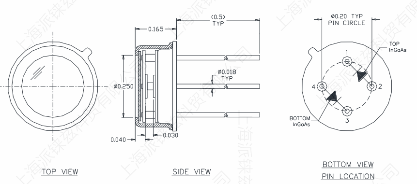 50%截止波長>2.45um, 典型峰值響應度1.45A/W, 極佳的溫度穩定性, 減小邊緣效應